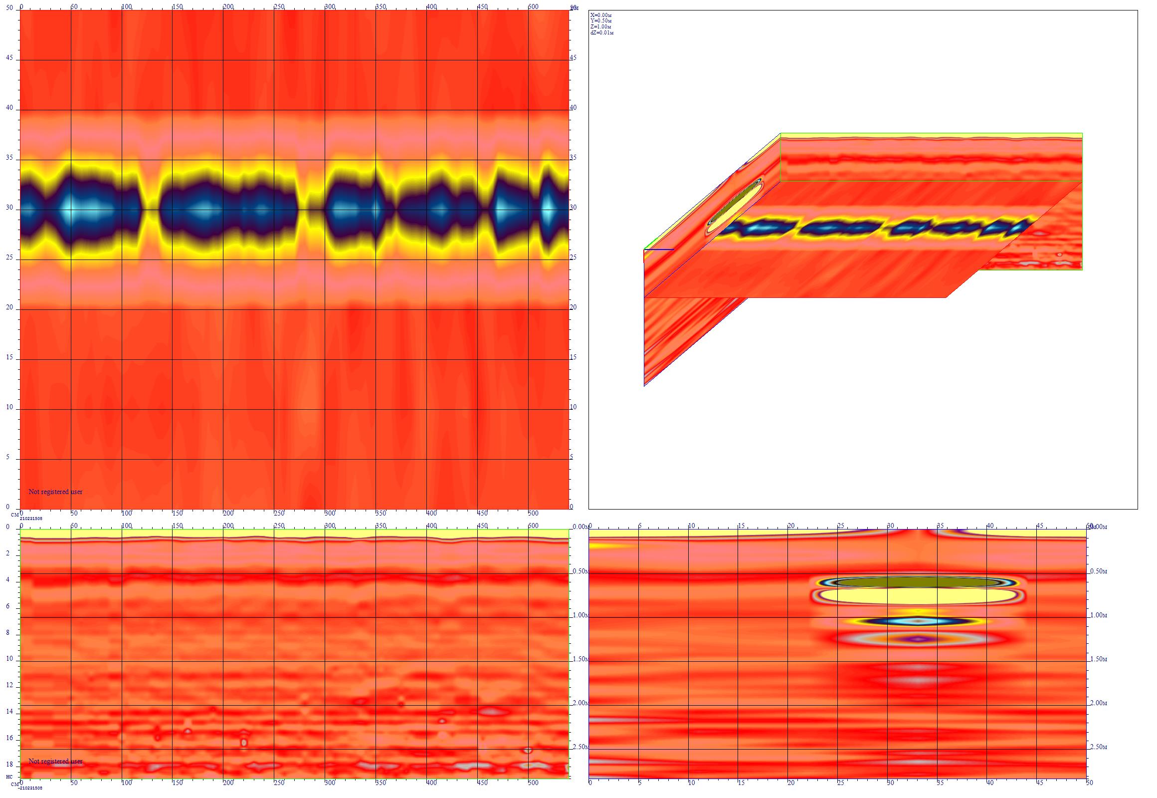 Как показывает практика, при различных условиях окружающей среды георадар позволяет обнаружить: • объект с линейными размерами от 3-5см на глубинах до 1м;